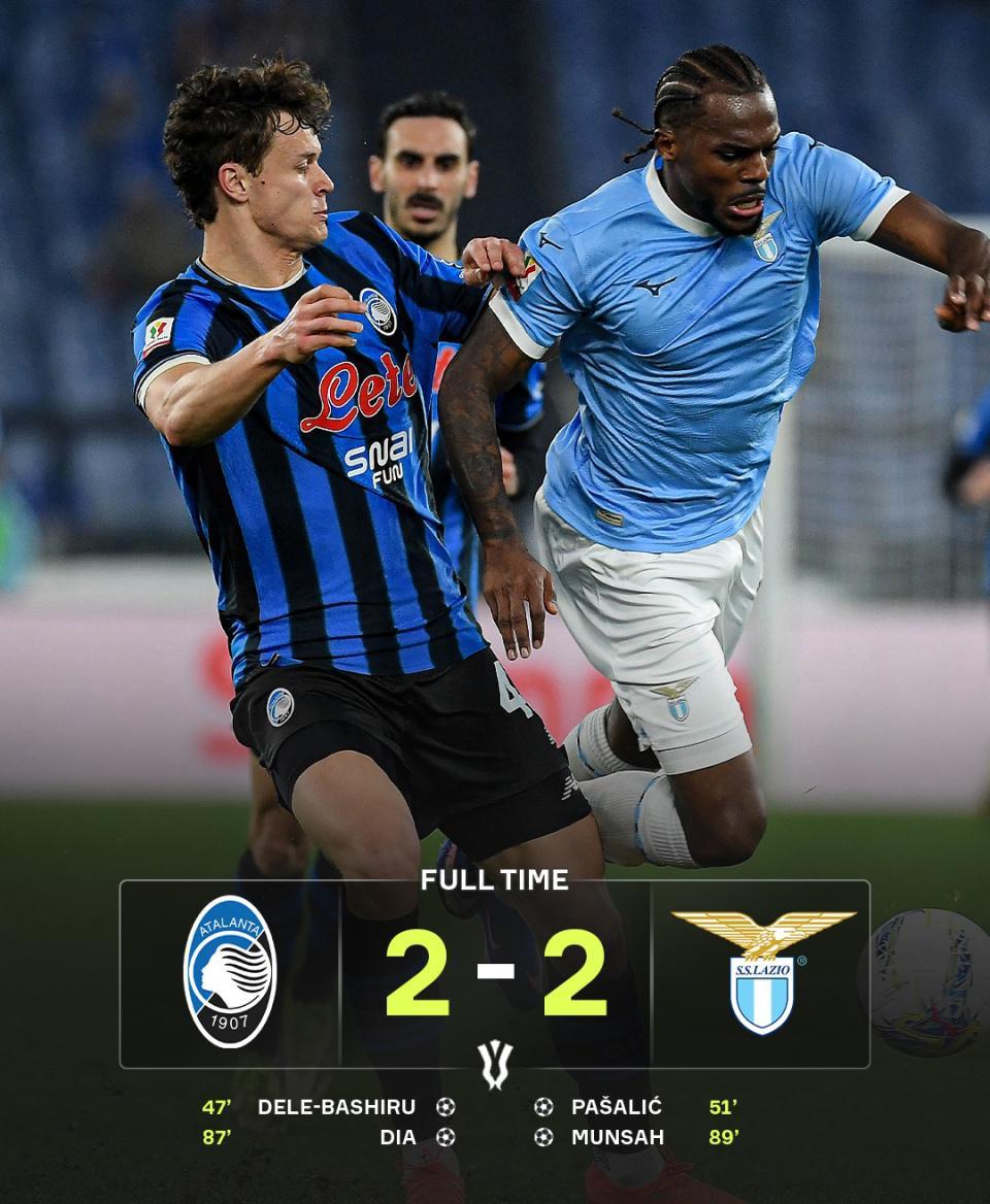 意大利杯半决赛首回合,拉齐奥对阵亚特兰大。上半场双方均无建树,下半场风云突变。
